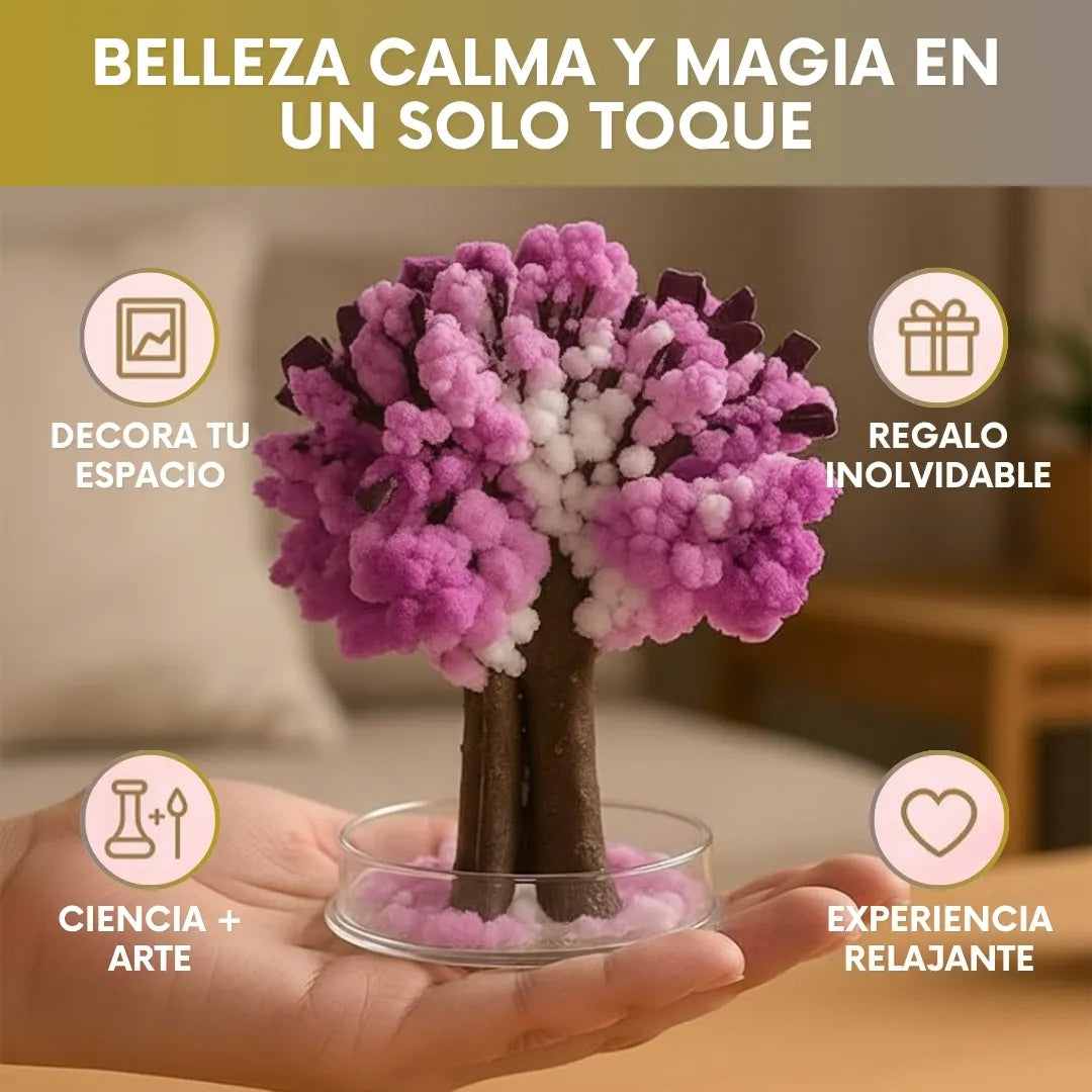El Árbol Mágico Sakura te regala un momento de calma única. En solo minutos, verás cómo florecen sus pétalos rosados, creando una sensación de paz que reduce el estrés y mejora tu estado de ánimo.