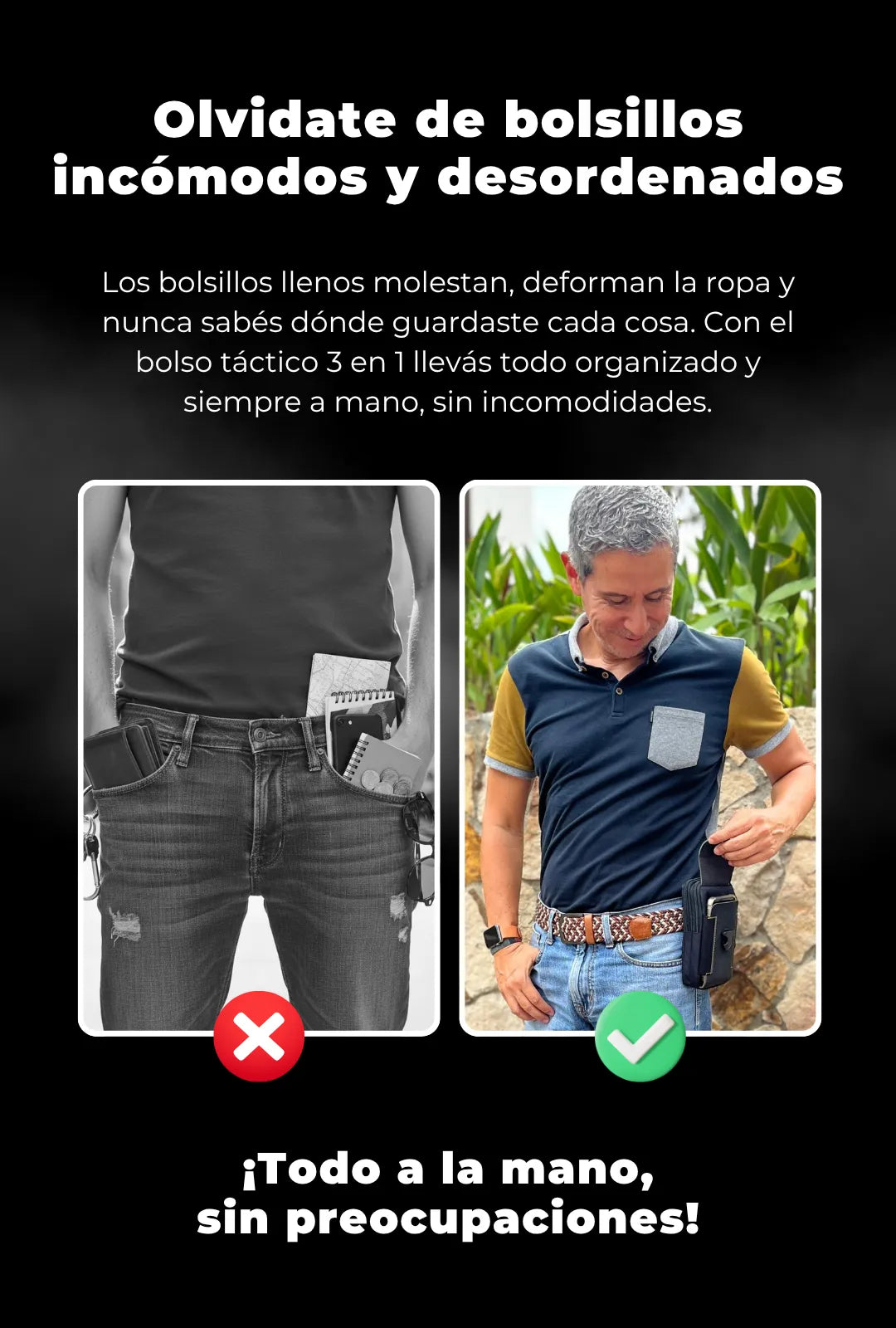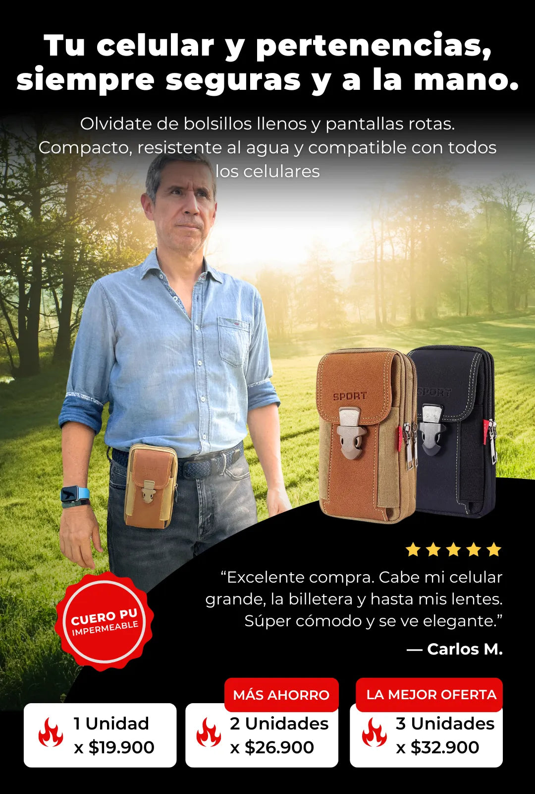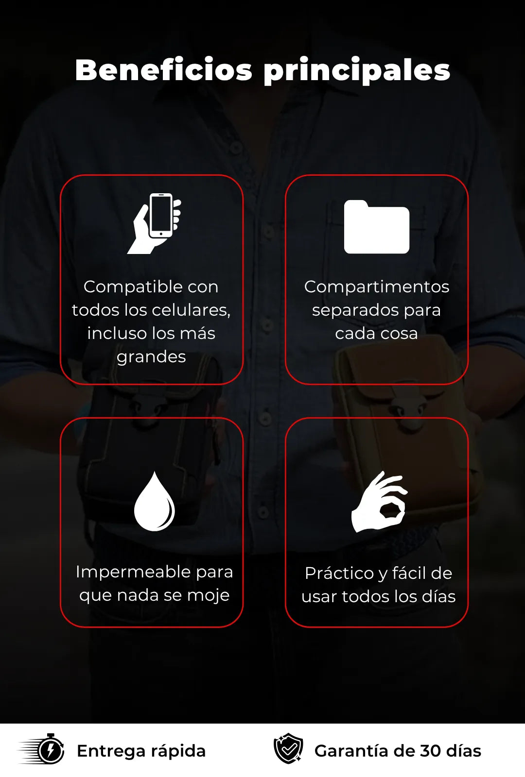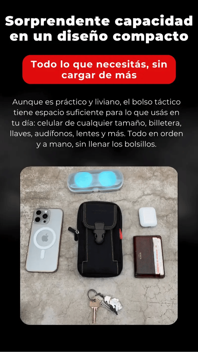 Cuenta con 3 compartimentos para guardar todo lo esencial: teléfono, billetera, llaves, cargador portátil y más.