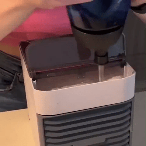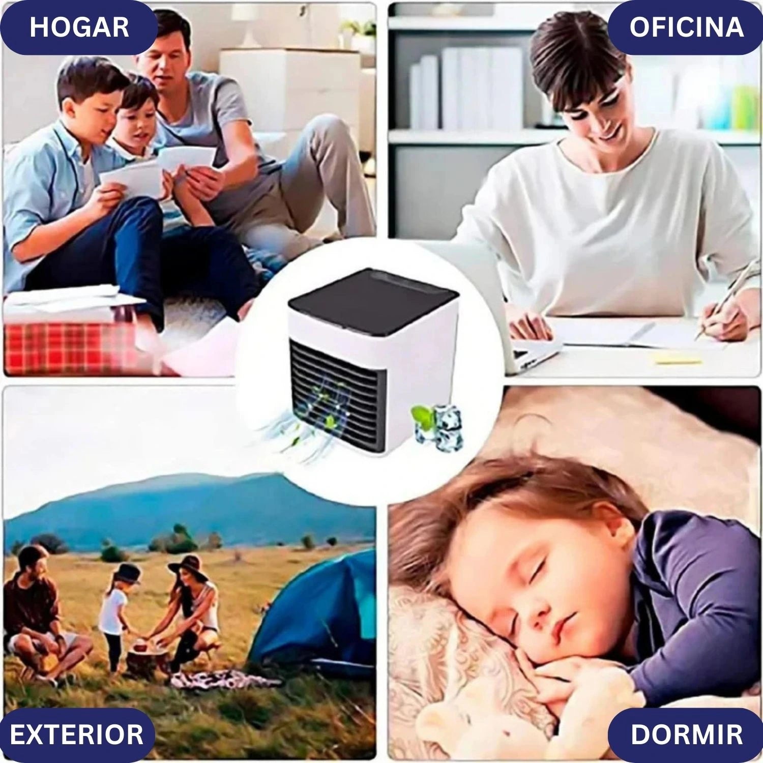 Este mini aire acondicionado, compacto y liviano te permite disfrutar de un ambiente fresco en cualquier lugar.