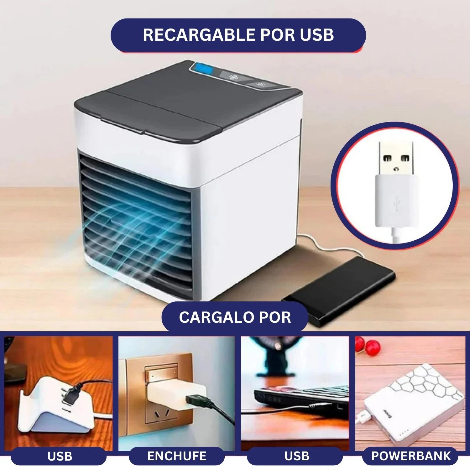 Este mini aire acondicionado se recarga rápidamente, lo que te permite usarlo con un enchufe convencional o incluso con un powerbank.