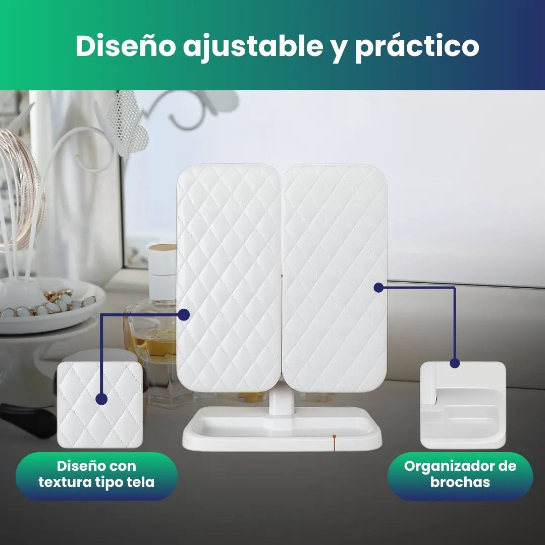 ✅ Espejo central + 2 paneles laterales ajustables