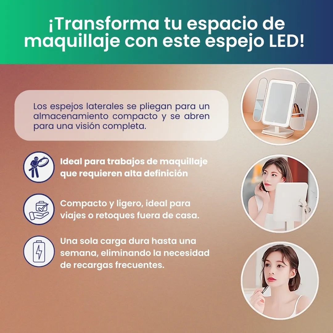 Mientras otros espejos tienen mala luz, sin aumento y no permiten ver todo el rostro, MirrorGlam ofrece una experiencia completa con iluminación profesional, ángulo ajustable y diseño plegable.