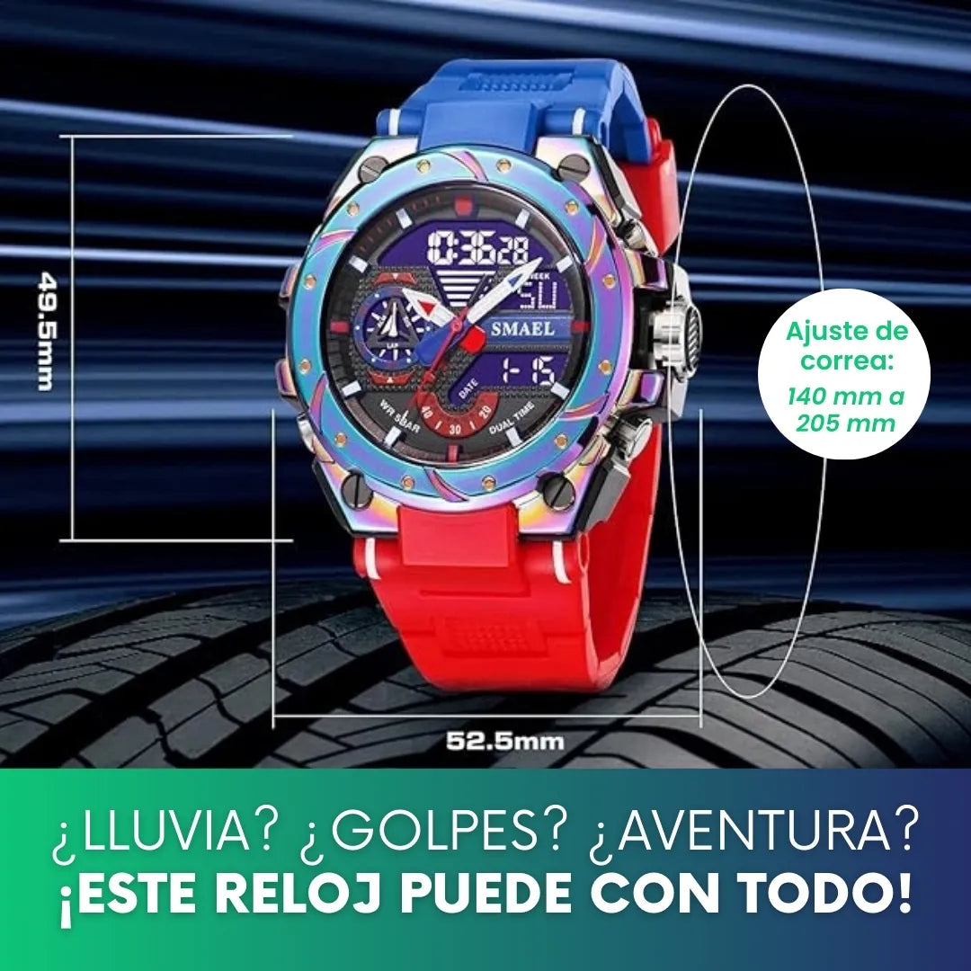 ¿Te cuesta leer la hora con sol fuerte o en la noche? Este reloj cuenta con un sistema de números y agujas reflectivas que brillan.